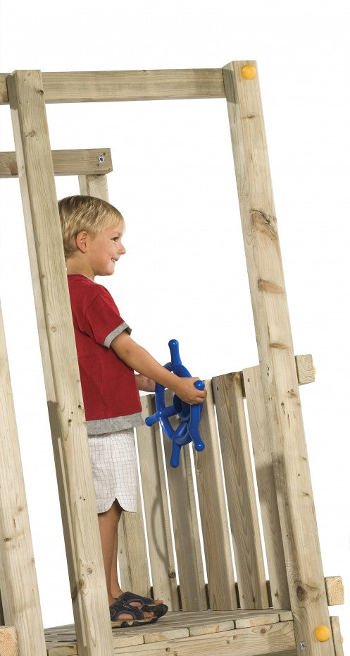 Verleihe deinem Spielturm echten Seefahrer-Flair mit dem Spielturm-Steuerrad Matrose! Dieses robuste Steuerrad aus wetterbeständigem Kunststoff ist eine spielstarke Ergänzung zu Klettertürmen oder Spielhäusern. Mit beiliegendem Befestigungsmaterial kann es schnell montiert werden und sorgt für stundenlangen Spass. Erhältlich in vier Farben: Rot, Grün, Blau, Limettengrün.